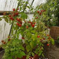 1m hög buske, som behöver inte tjuvas, ger små röda runda frukter, som är saftiga och söta, speciellt under andra delen av säsongen.
