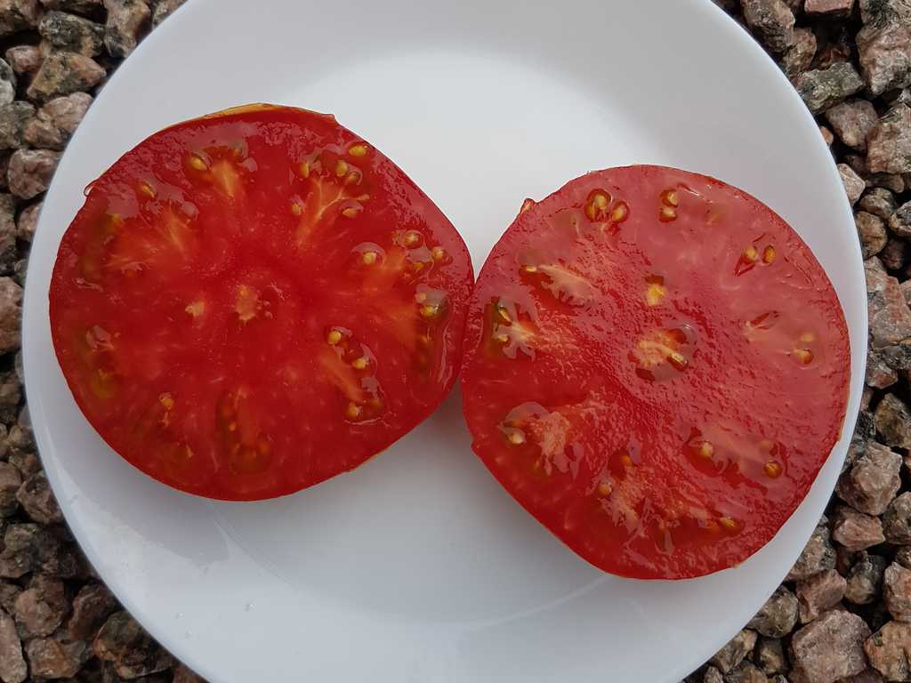 En sibirisk härdig sort, 2 m hög planta producerar extra stora röda biffiga tomater, som väger 200-300g (upp till 800g). Köttet är söt, saftig med en lätt syrlighet. Lämplig för färsk konsumtion och för att göra juicer, såser och ketchup. En mycket värdig sort, värmebeständig, resistent mot tomatsjukdomar.