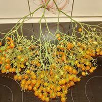 Ny dvärg körsbärssort av multiflora-typ. Bra för odling i krukor. Mycket produktiv sort. Tusentals små gyllene söta och smakrika frukter. 0,7-1,2 м, men bättre odla den som ampel sort.