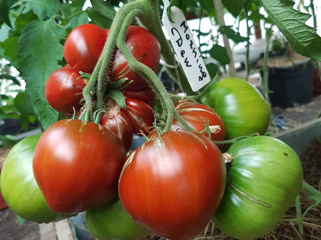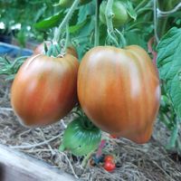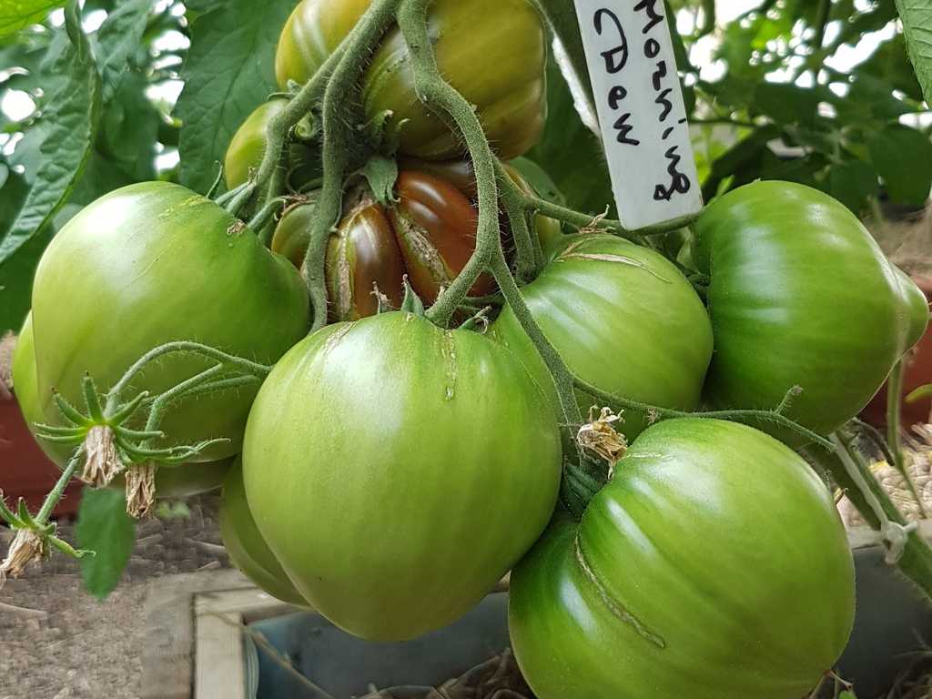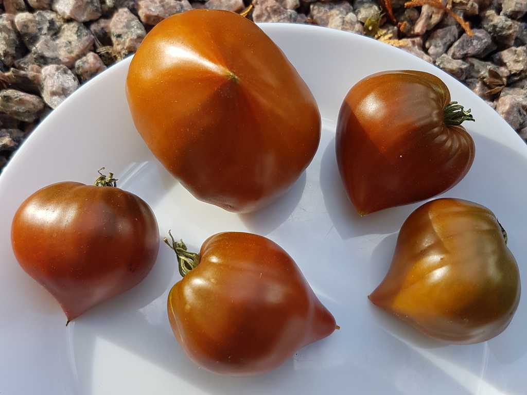 Sort är i mina favoriter därför att den är tidig sort, producerar bra även i mitt varmt växthus, frukter är fina och stora, saftiga och super goda, sista tomater är mycket spetsigare, sparas till Januari.