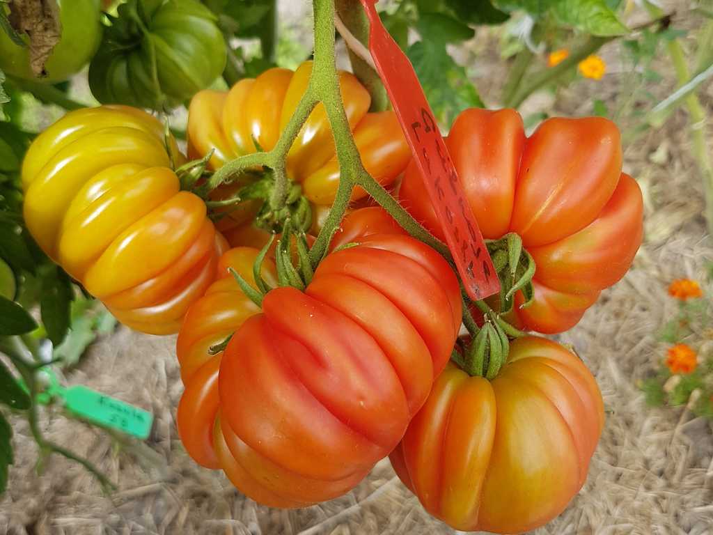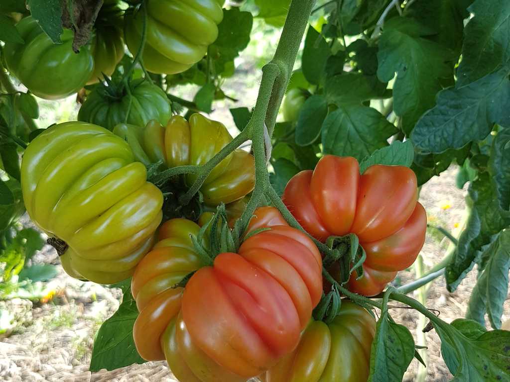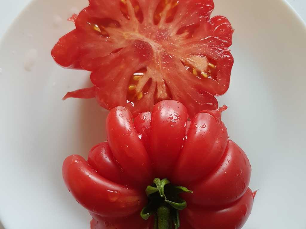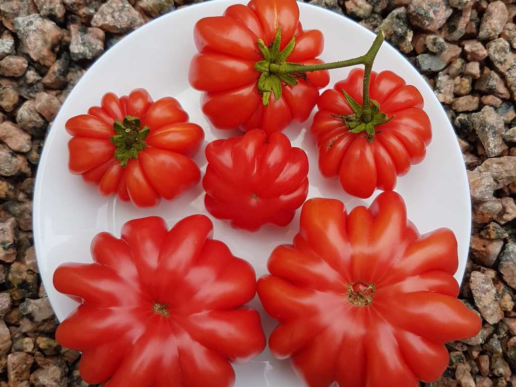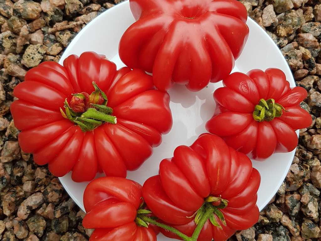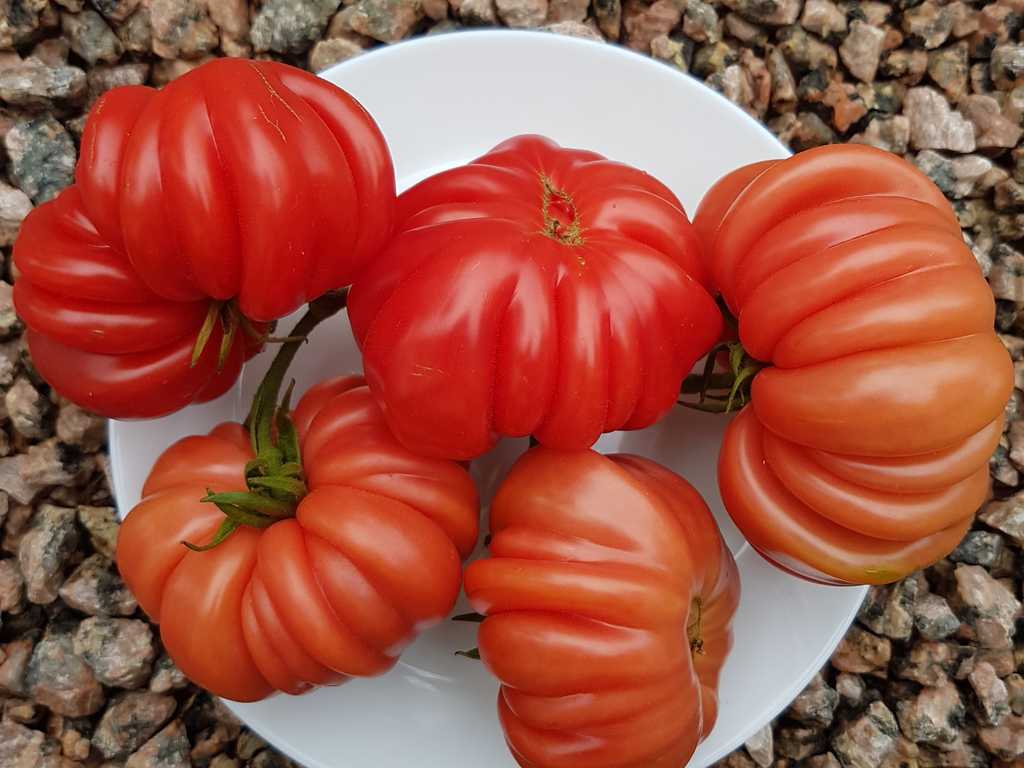 (Gribnoje Lukoshko org. namn). 2 m hög planta producerar stora, räfflade tomater runt 100-500 gram. Klarröda frukter med mörkrosa fruktkött. Fyllig, söt, traditionell tomatsmak. Mycket produktiv och tålig sort, kan odlas ute.