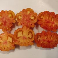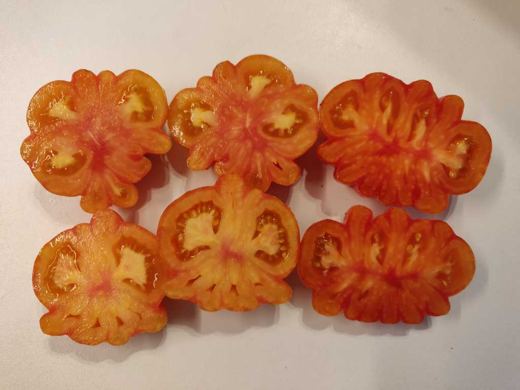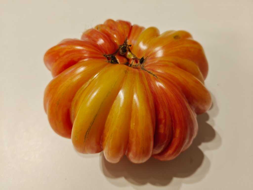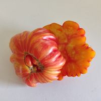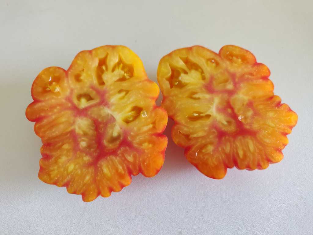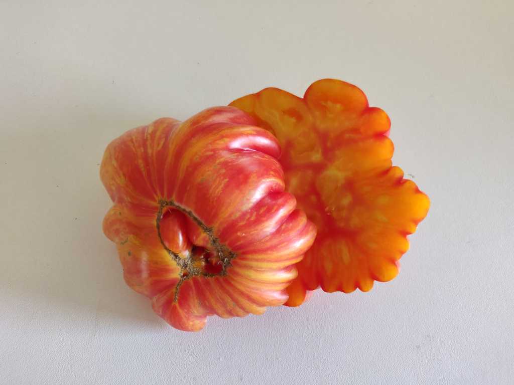 Mycket sällsynt variant av Mushroom Basket-sorten. Medelstor till stor frukt, extremt räfflad. Magnifika färger som blandar rosa orange och gyllengult. Söt, fruktig, mycket fast kött, som innehåller lite gel och frön. Sort mycket väl anpassad till svåra odlingsförhållanden under svala eller korta säsonger.