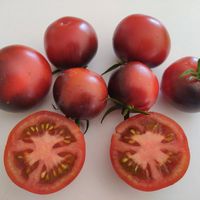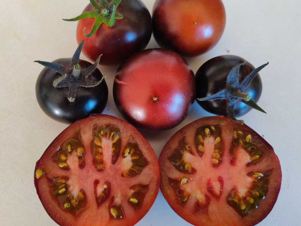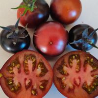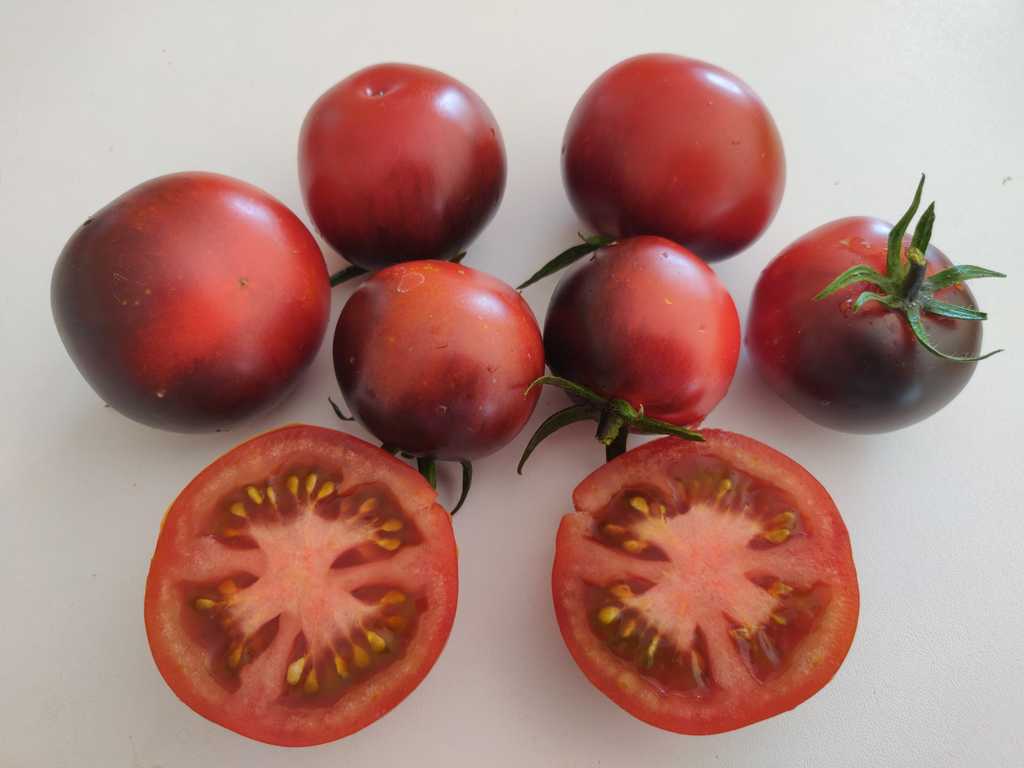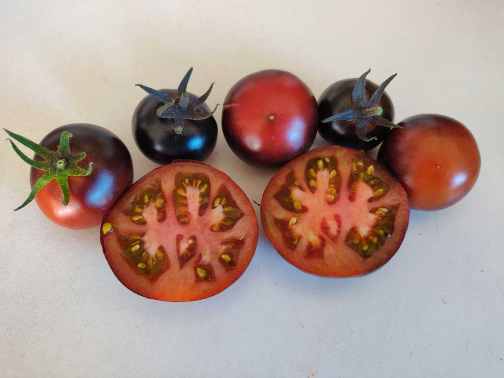 Korsning mellan Blue Wonder och Red Charcoal. Medelstora saftiga tomater har söt och mycket frukt arom, väger 50-100 g, avkastningen är hög. Buskhöjd upp till 1,5m