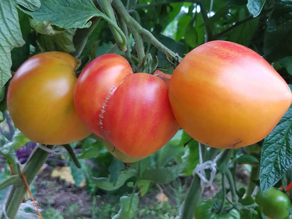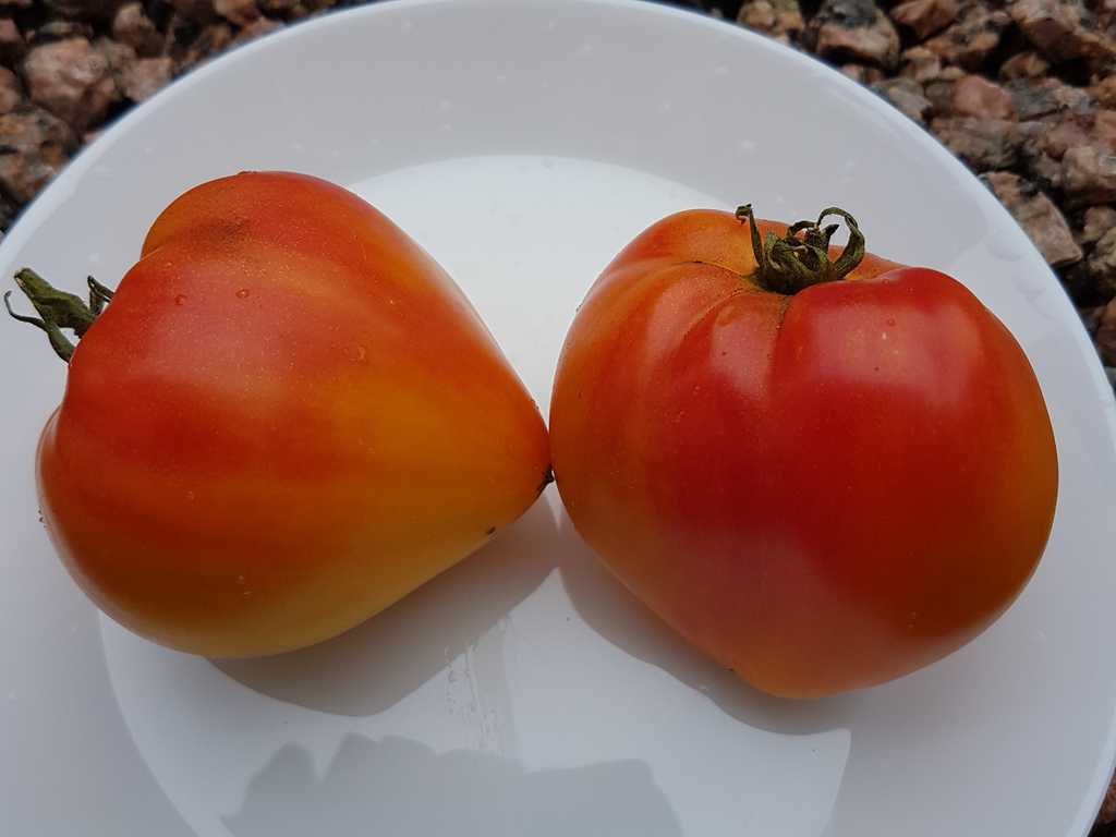 Hög planta - 2m, med gui-röda hjärtformade bi-colorer. Frukterna har en underbar fruktig söt smak och ett fint fast kött. De når en vikt på 400 g och har mycket få frön. Sort är känslig mot överhettan i växthus, producerar mer på friland.