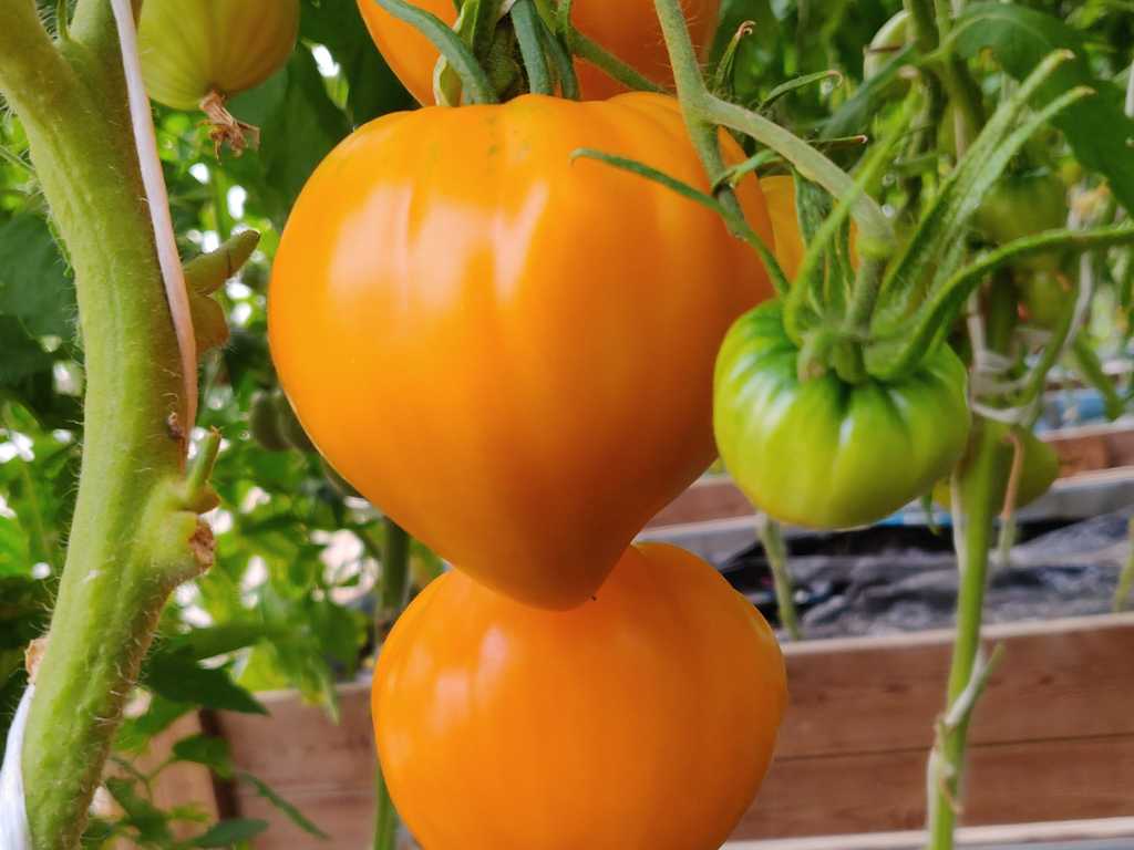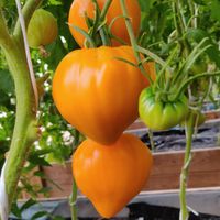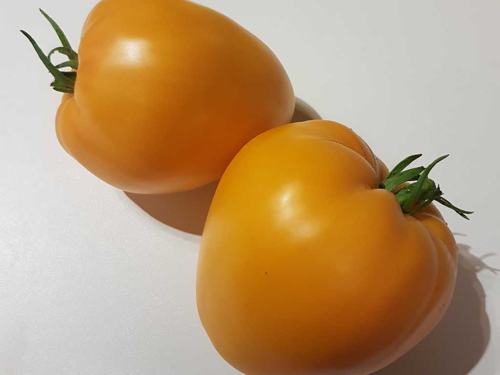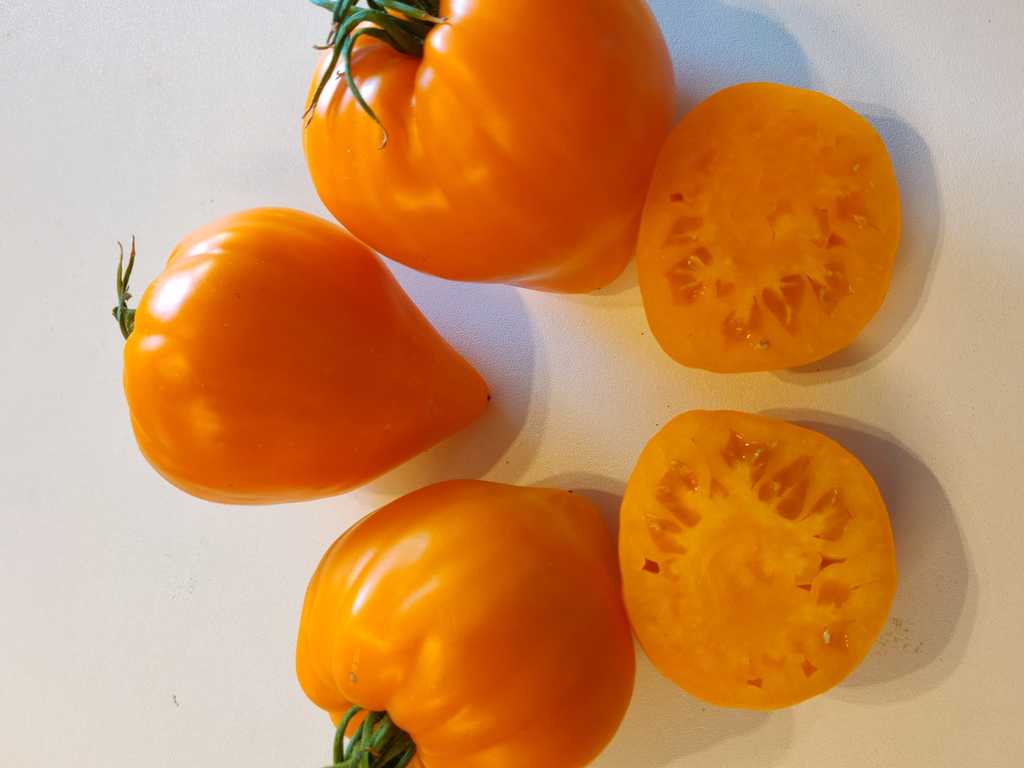 En robust och välproducerande tomatsort, ganska sen, med kraftigt växtsätt, 2m hög. Orangea hjärtformade frukter, som väger 200-400g är köttiga och har en exceptionellt rik och söt smak. Tomaterna innehåller få frön.