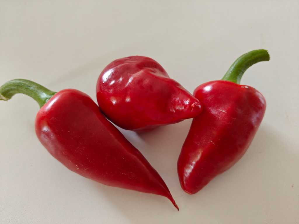 Hjärtformade röda frukter med tjocka saftiga väggar med mycket god smak.