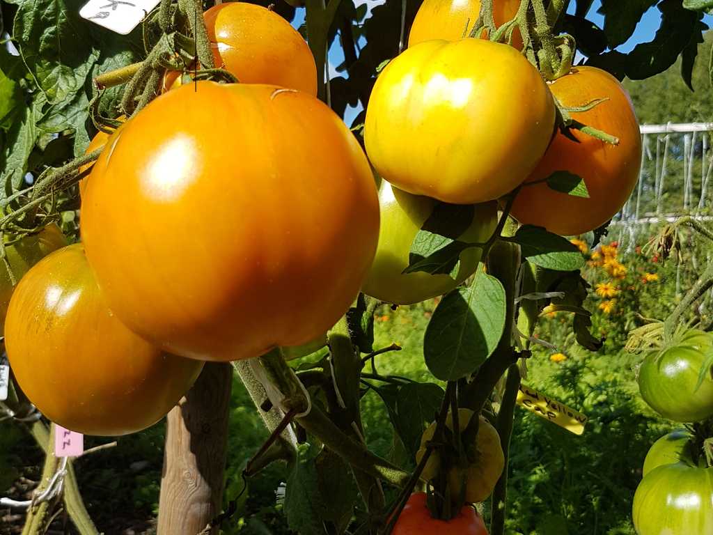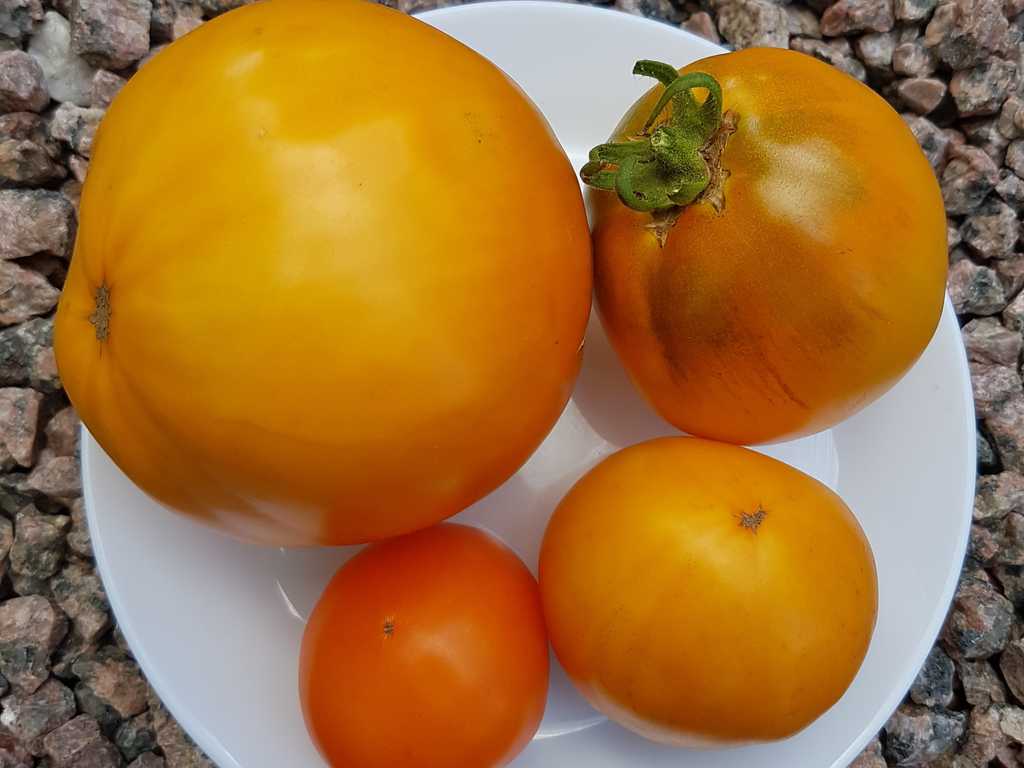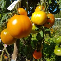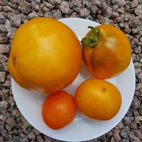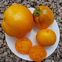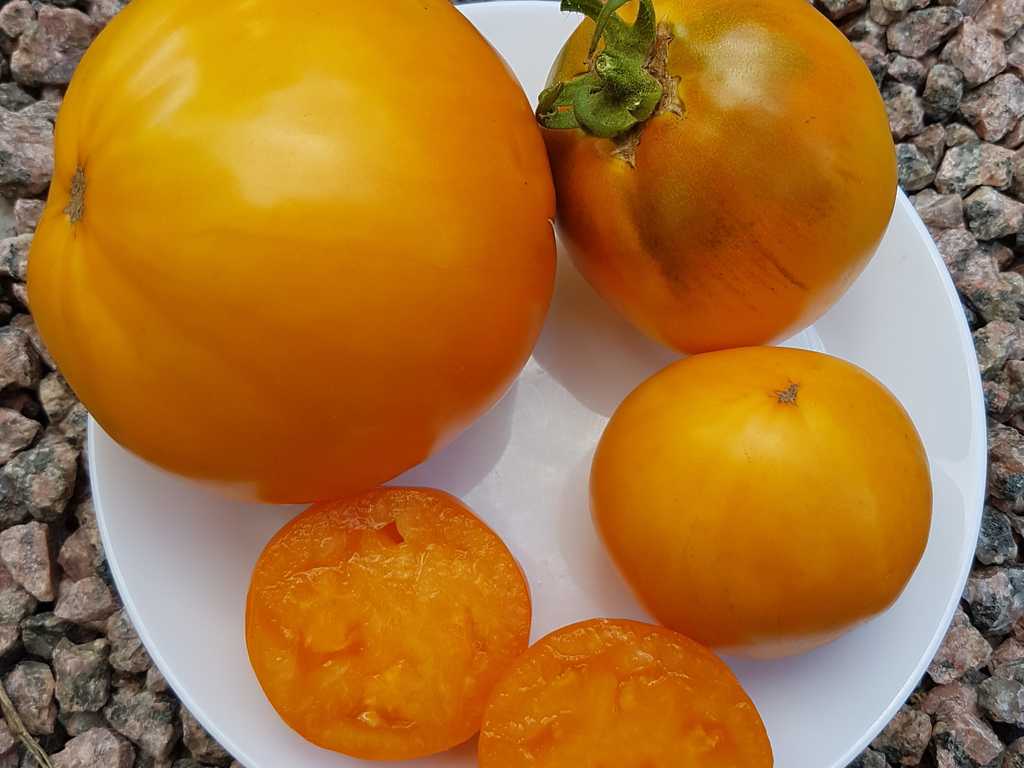 1,5m hög, orangea frukter i olika storlekar, söta och saftiga med minimum sura. Har motstånd mot de flesta tomat sjukdomar.