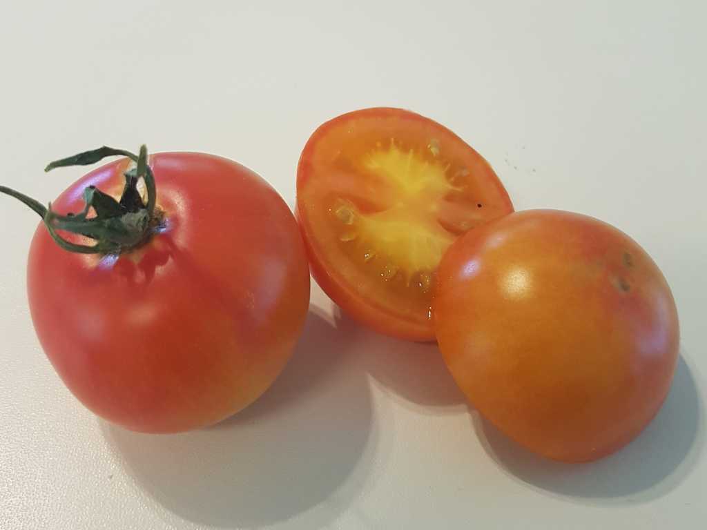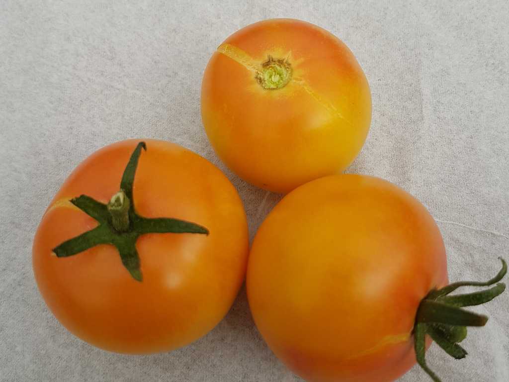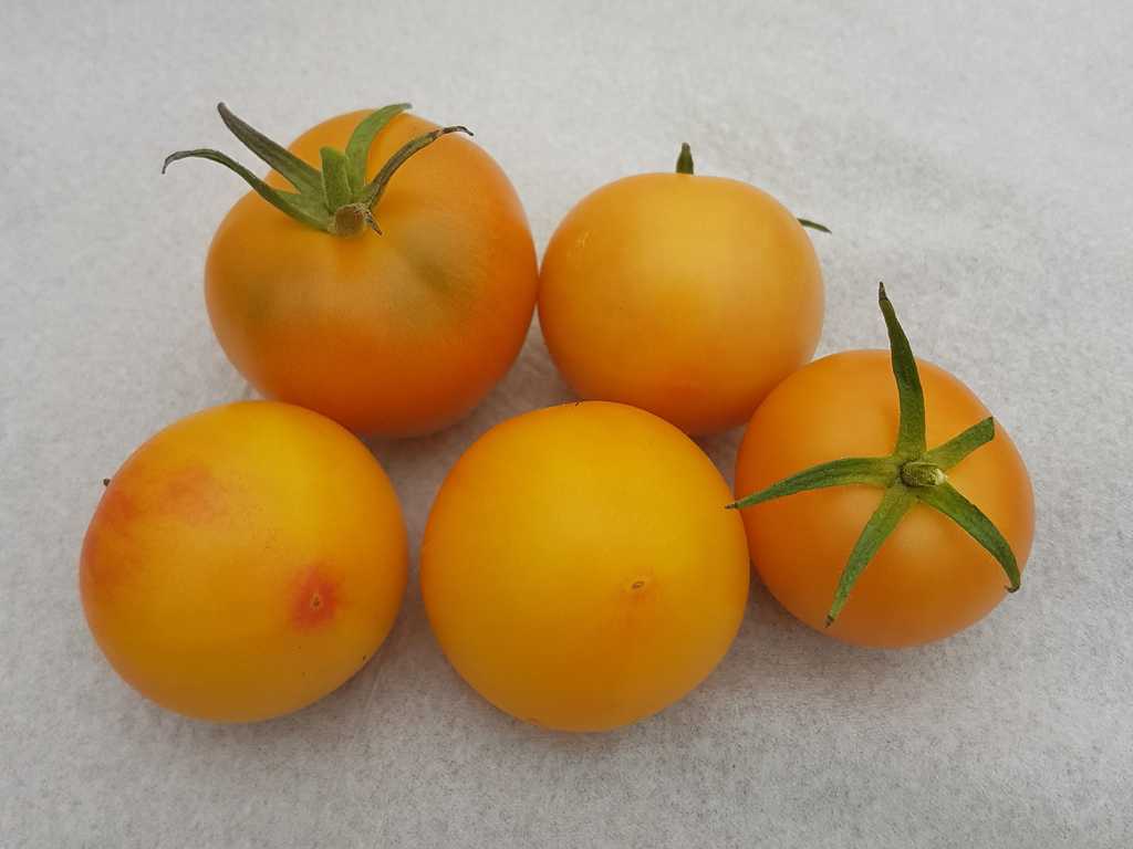 Liten bi-color frukt, på 40 till 60 gram, ganska rund, i storleken på en golfboll. Kraftig växt, 2m hög med stor utveckling. Orange kött, mycket saftigt. Mycket mjuk, söt och fruktig smak.