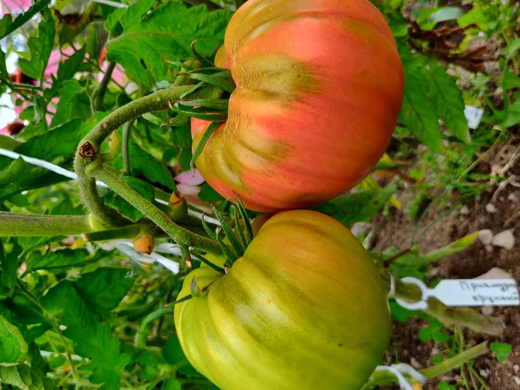 Kraftig planta producerar mycket stora mörkrosa tomater. Köttet är saftigt, sött med en liten surhet. Huden är tunn. En högavkastande, medium-tidig sort. Buskar upp till 1,8 m höga, tomater väger 200-700 g.