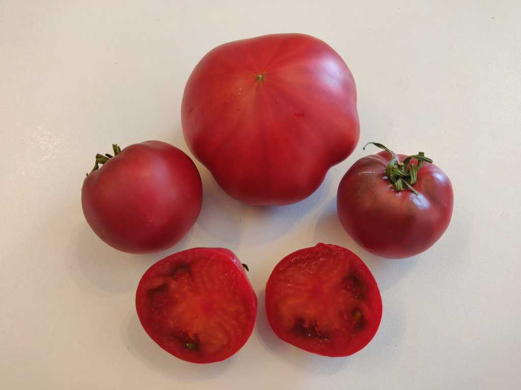 Korsning mellan Cherokee Purple and German Red Strawberry. Frukter är hjärtformade, en del av dem är plattrunda, helt mogna tomater har vacker lila färg, saftiga och mycket goda i smaken. Vissa plantor av den sort ger tomater med lång spets. Tror att den sort är inte helt stabil. Jag har tagit frön separat, från plantan med rundare frukter nr 1 och från planta med spetsigare frukter nr 2. Båda sorter är mycket goda.