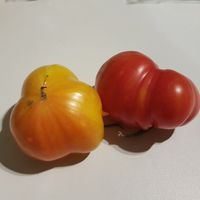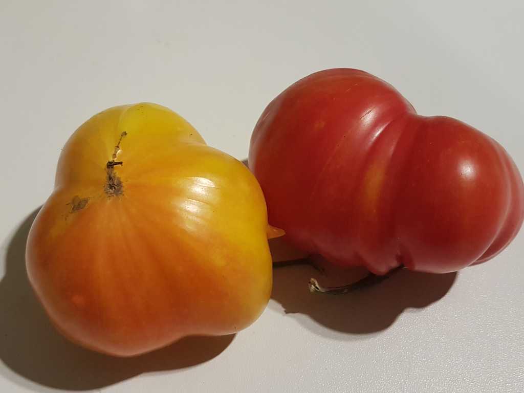Frukten väger ca 250 g, tvåfärgad gul/orange med en rödaktig nyans, rund, 7 till 10 cm i diameter, något platt och ribbad vid axlarna. Köttet är sött, har en utmärkt fruktig smak med en trevlig arom.