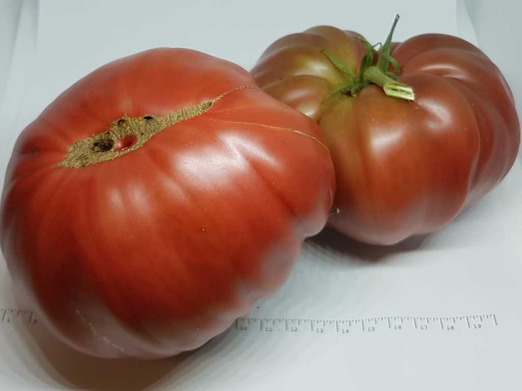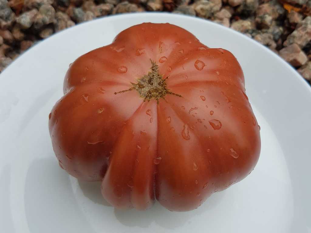 Extra stora vackra frukter är rundade, ribbade, rödbruna i färgen, vikt 200-500 gram. Smaken är god, söt. Sallad sort.