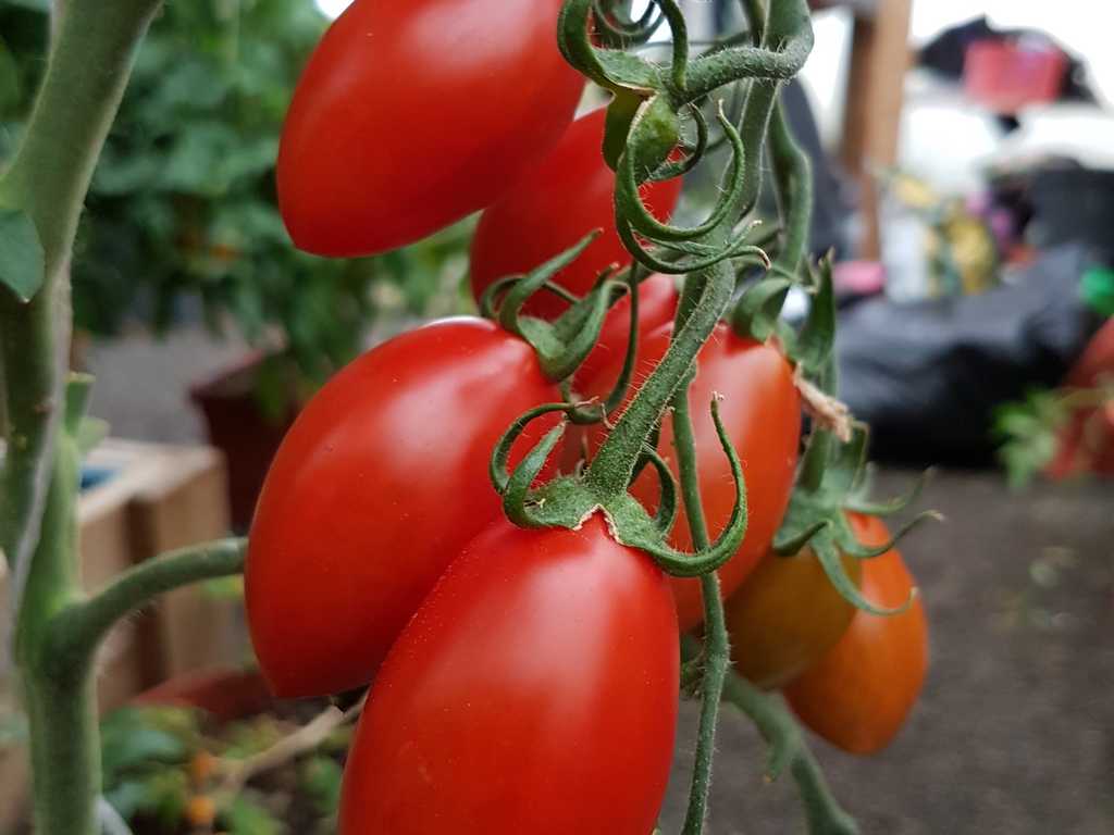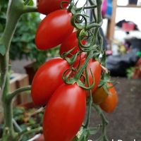 Vacker form och skarpt röd färg. Hård men saftig och super god tomat, lagras länge.