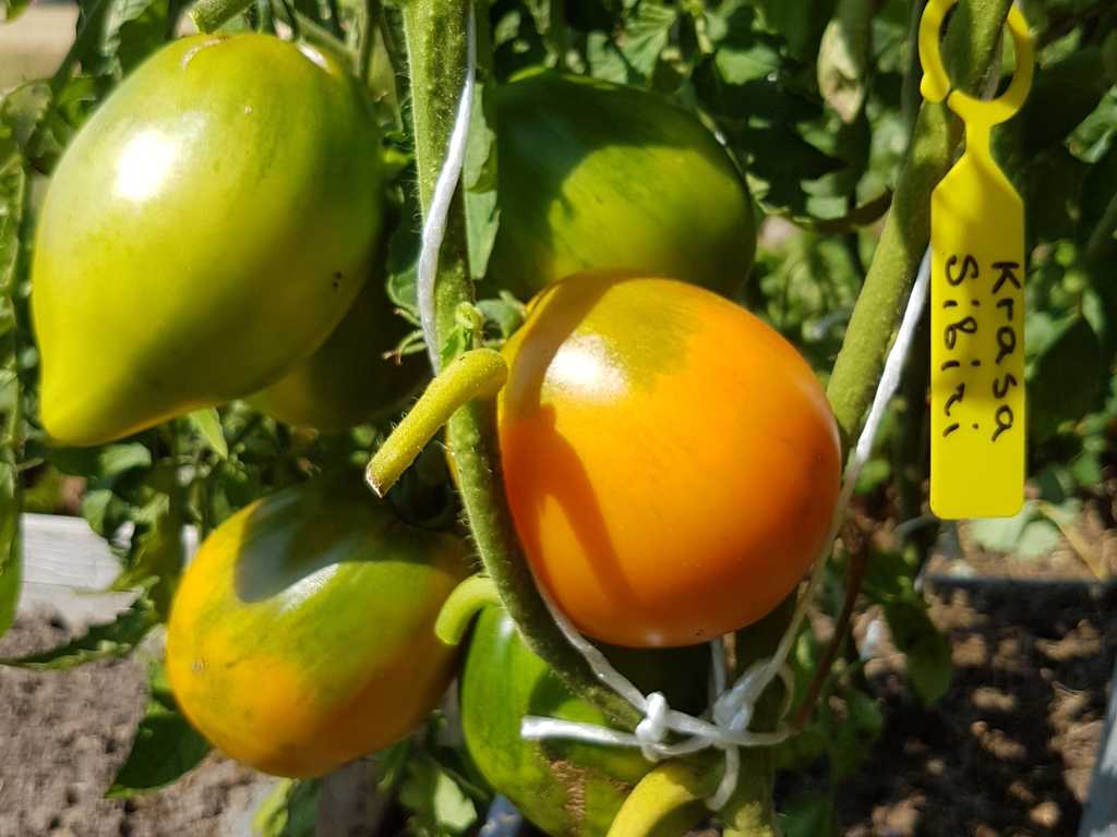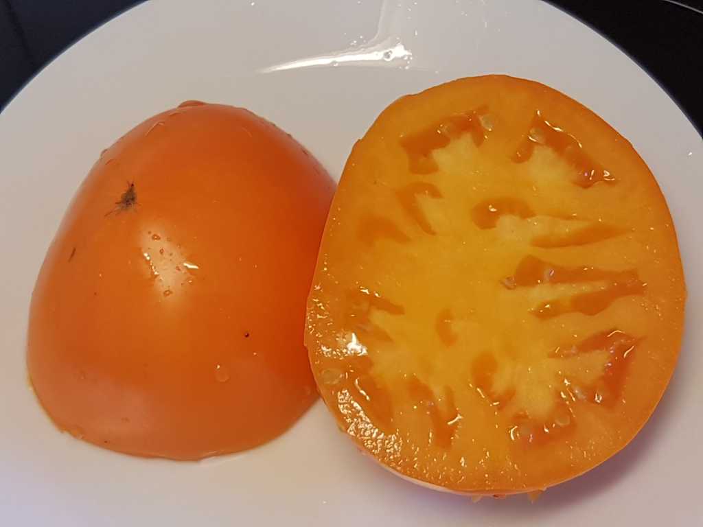 1,5-1,8m hög planta, producerar stora orangea avlånga frukter med gröna axlar som försvinner, när de är helt mogna. Tomater har tät köttig konsistens, med god smak. Frukter är rika på karotin och sys-lycopen. Perfekt att koka såser, juice och äta färskt.