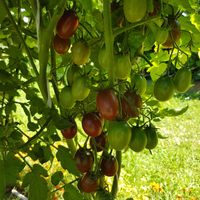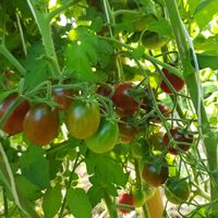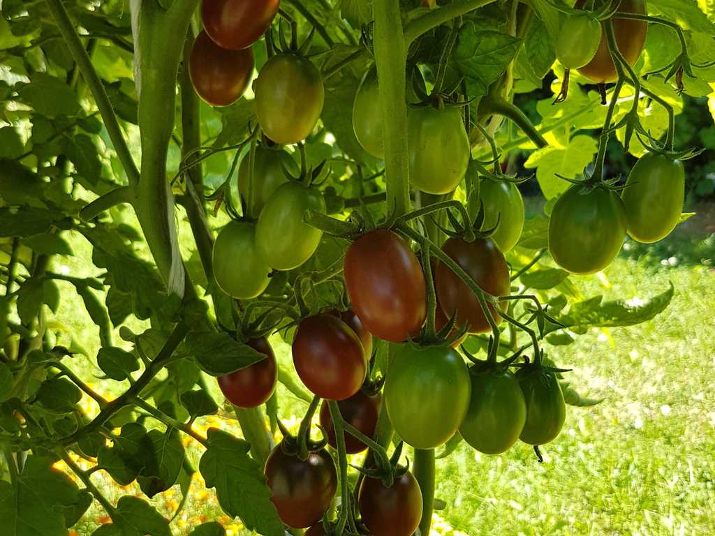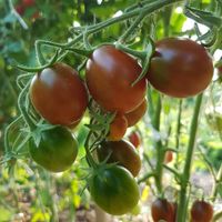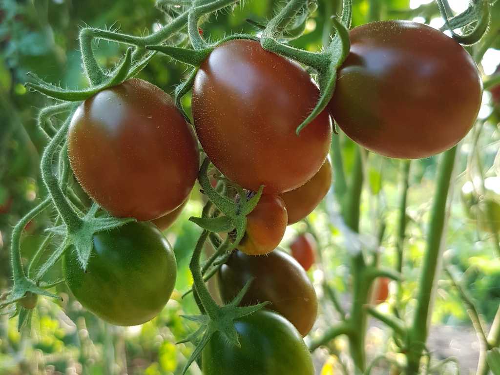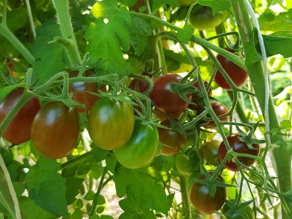 Rödbruna små frukter med gröna axlar. Saftig och köttigt. Mycket bra typisk "svart" smak. Växt med stor utveckling (2m hög), mycket produktiv sort.