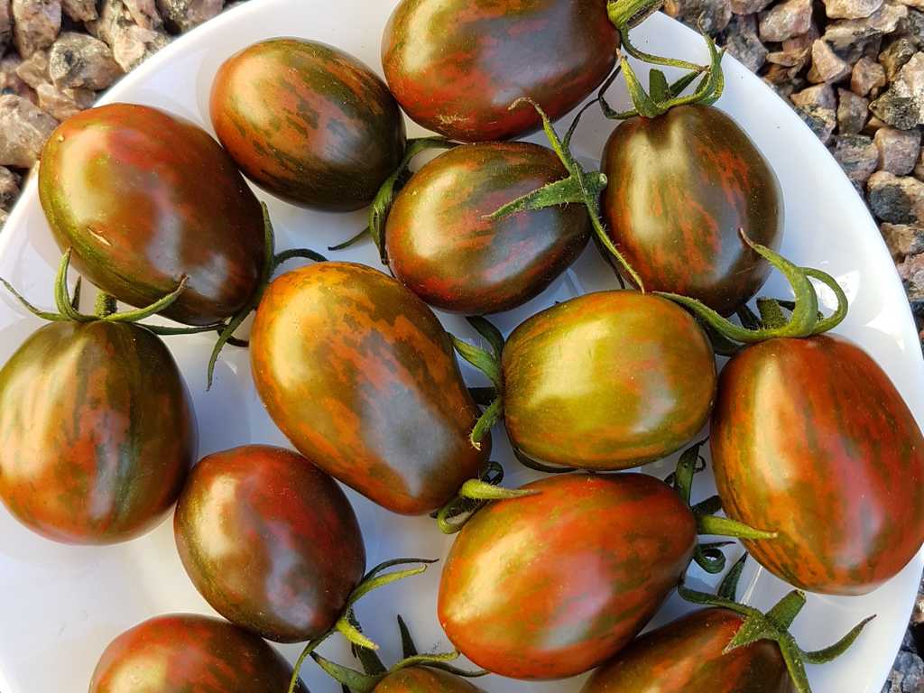 Plommonformade frukt som väger + / - 80 gram. Rödbrun hud med mörkgröna ränder. Fast, saftigt pastaliknande kött med lite gel. Söt smak, perfekt för konservering men också utsökt i sallader. Riklig produktion från mitten av säsongen. Håller bra efter skörd.