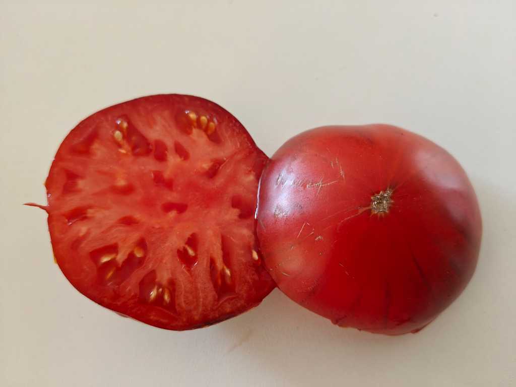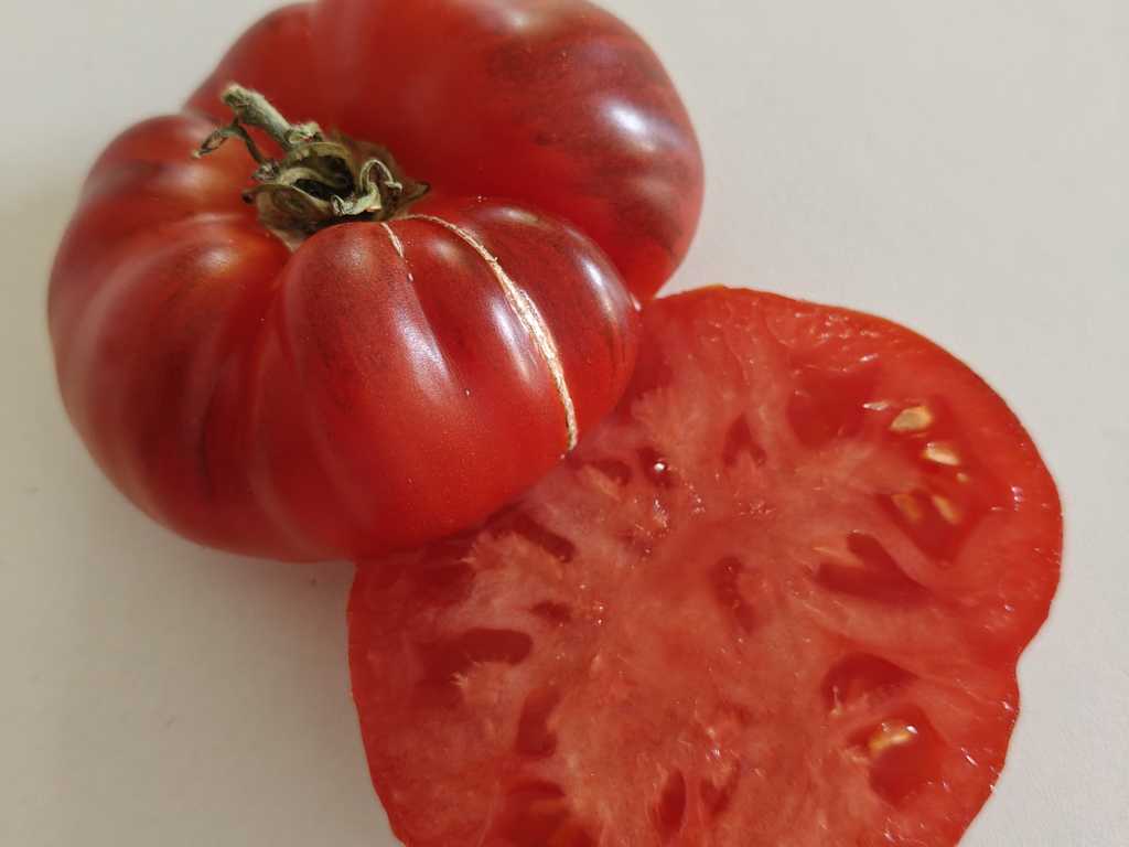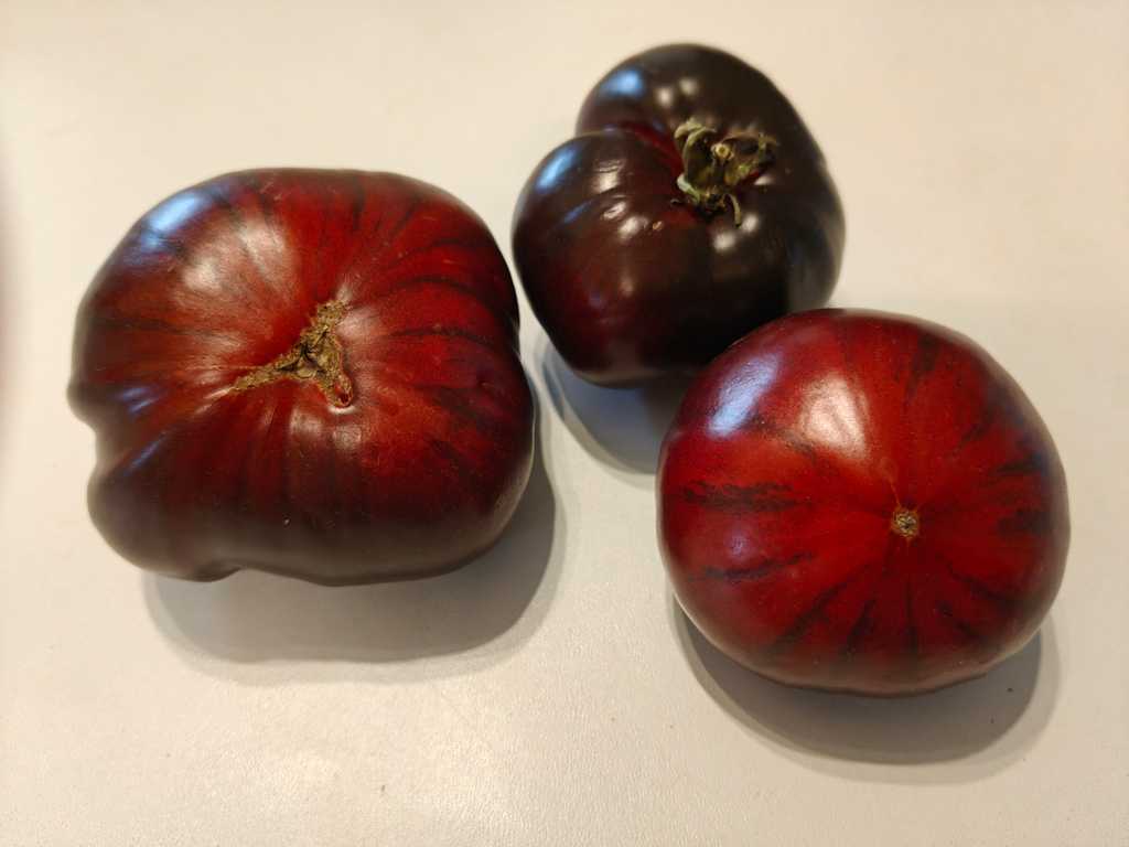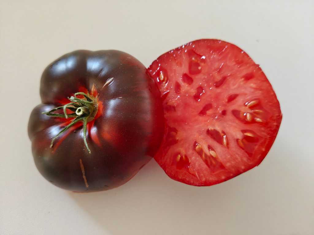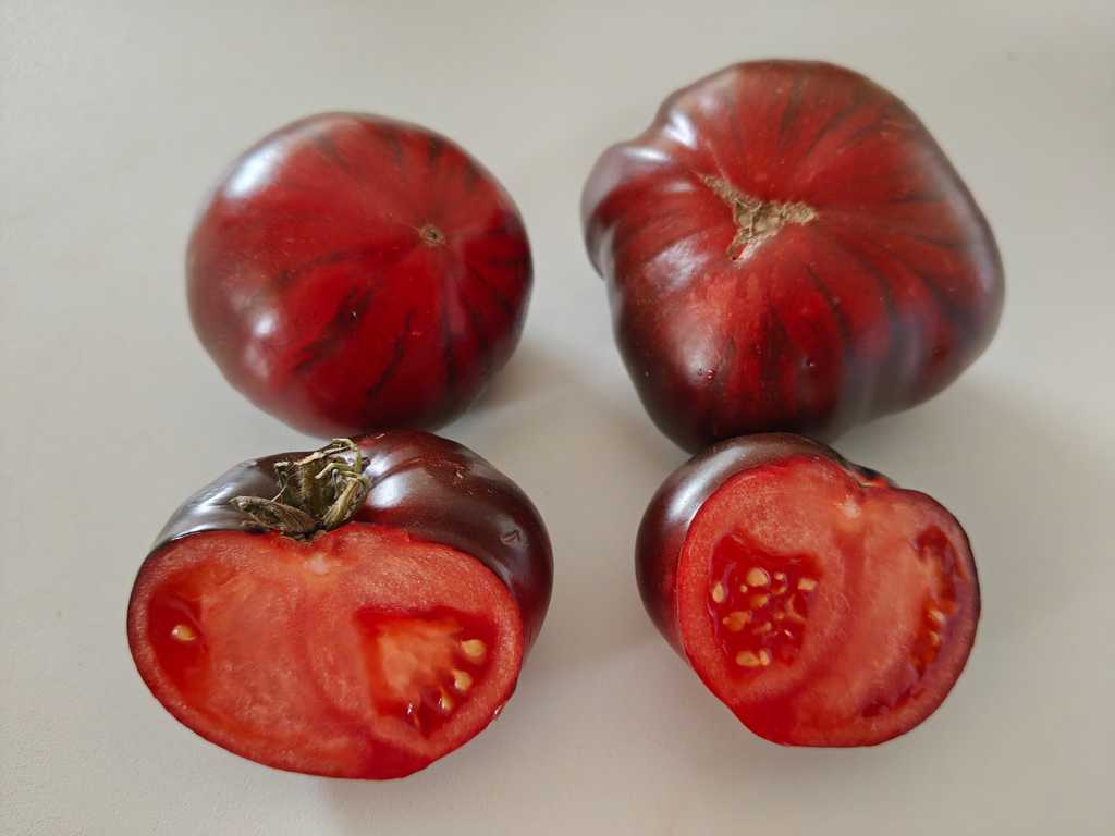 1,8m hög planta producerar stora blå-röda tomater. I början av säsongen understa del av frukten är röd, sen börjar komma anthocyanin render. Fruktköttet är tät och saftig, lagras länge. God söt i smaken, speciellt på slutet av säsongen.