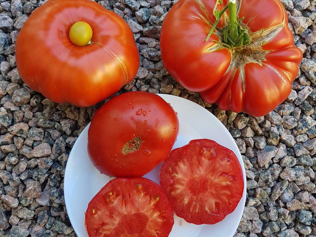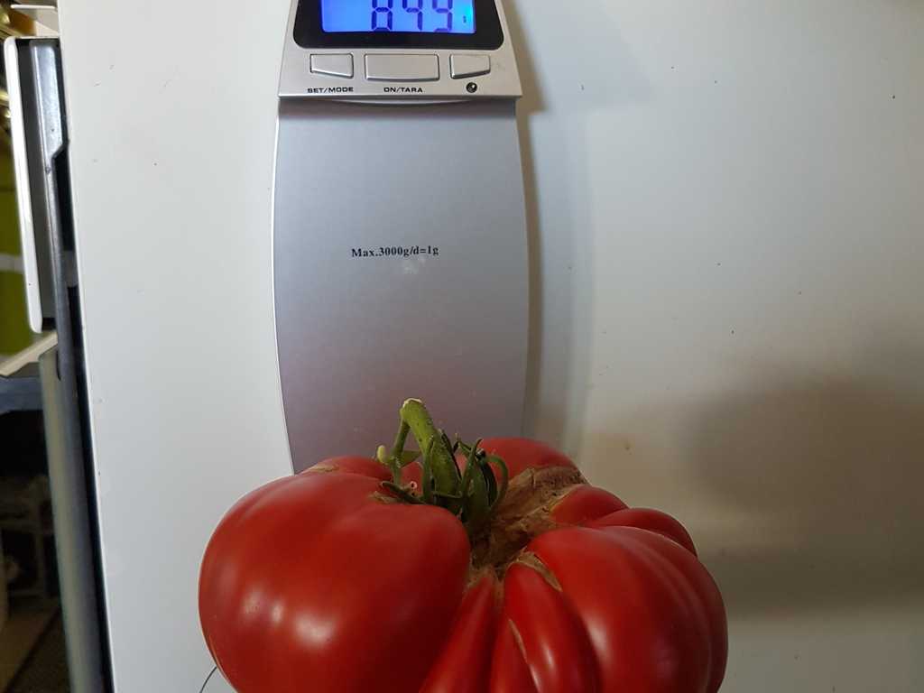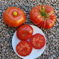 Medelhög planta 1,5m med jäkla stora röda tomater. Frukter är köttiga, saftiga och mycket goda.