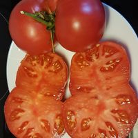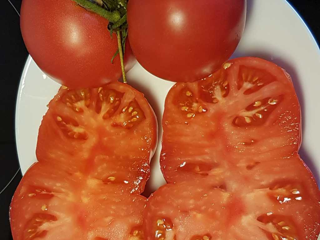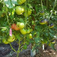 (Tomat Kung) Hög, upp till 2m. Mycket rikgivande sort. Snugga, stora, glansiga rosa tomater väger 200-400g, köttiga frukter med utmärkt söt, rik smak.