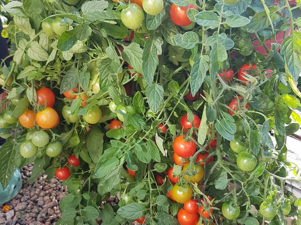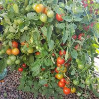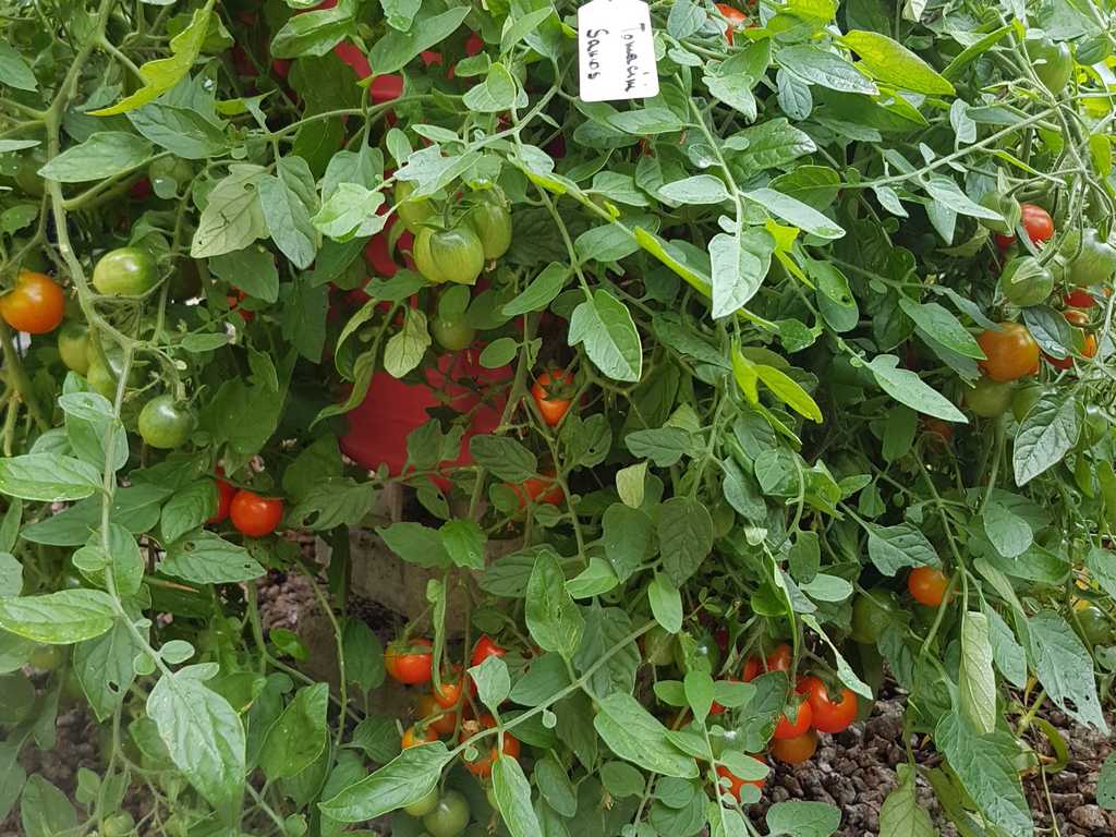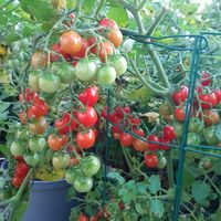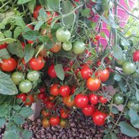 "Ampel" sort bra att odla i stora krukor(20-30 liter). Tidig sort med röda goda små frukter på hängande grenar. Mycket rikgivande.