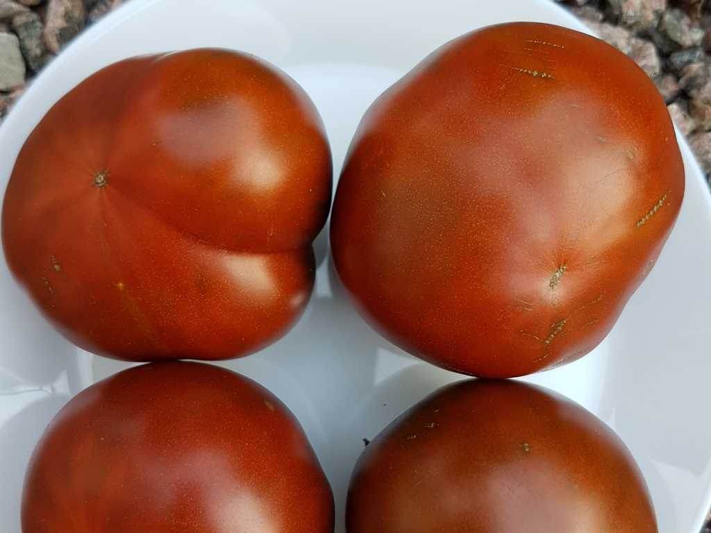 Medel hög, 1,5m, medeltidig, mycket produktiv sort, med medelstora, chokladfärgade frukter med utsökt smak, lika söt som sur.