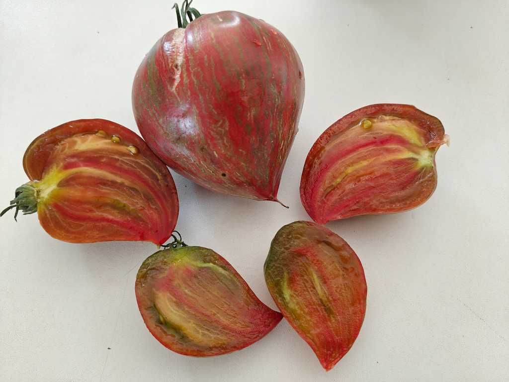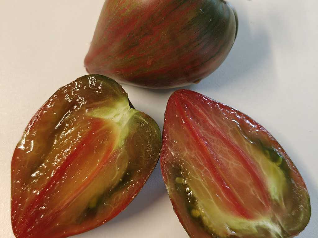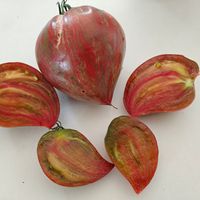 Sorten är från Sofia Saakova. Vacker som alla andra av hennes sorter! Hjärtformade frukter med exotiska färger som ändras med mognaden. Fruktköttet är mört och mycket saftigt, smälter i munnen och är mycket sött med fruktiga syran i bakgrunden.