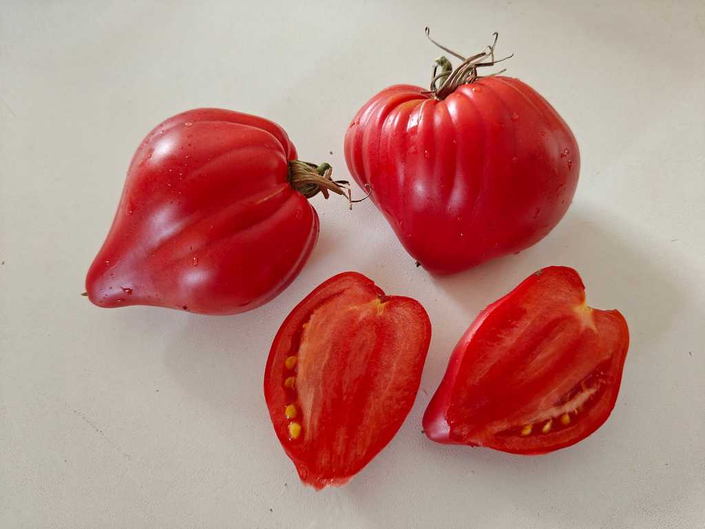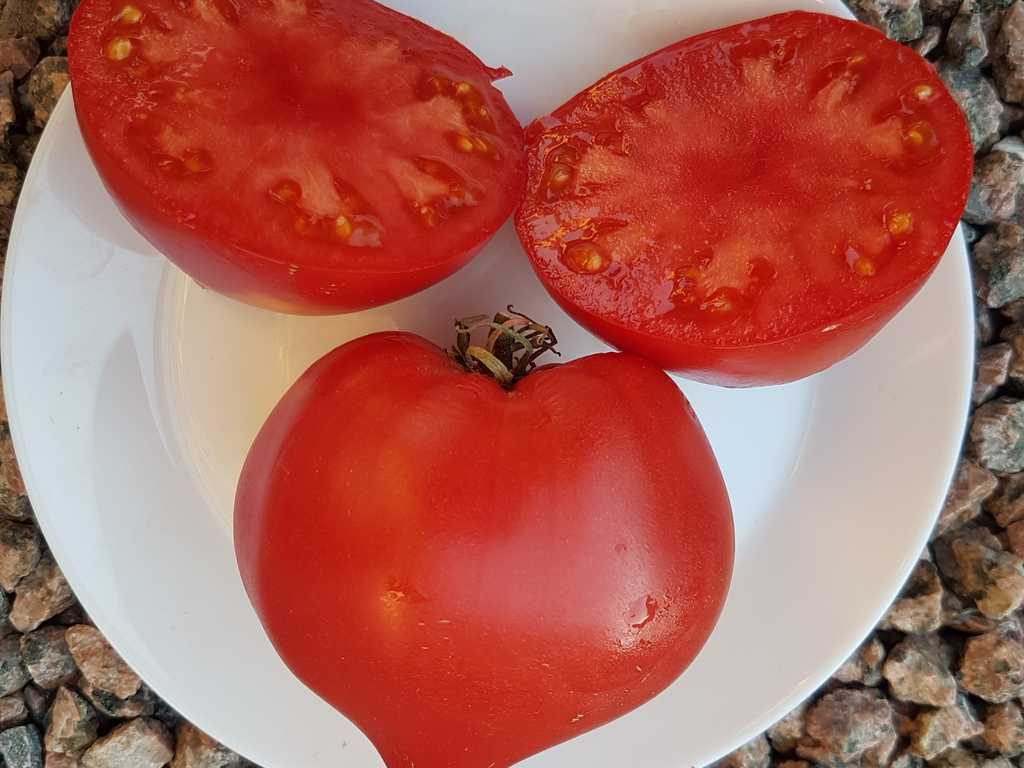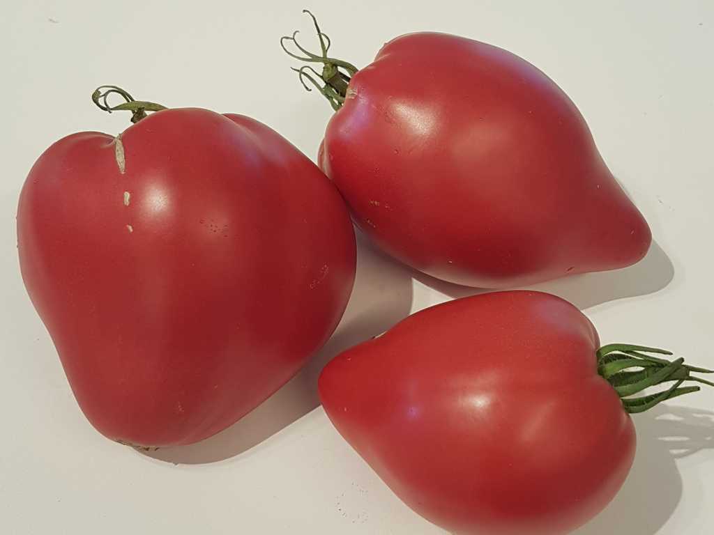 Hög, medeltidig, högavkastande sort. Frukten är rosa, mycket vacker, i form av ett hjärta, med lång näsan, utan sprickor och fläckar. Mycket köttig, väldigt söt, utsökt smak. Köttet är rosa, med konsistensen av smör, det verkar smälta i munnen.