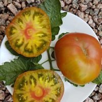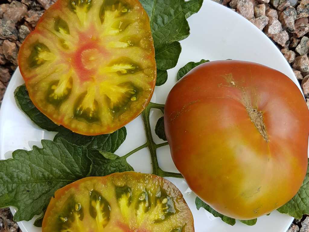 Medelhög (1-1, 4 m), medeltidig, mycket produktiv sort. Denna otroliga skönhet kom från Bill Jeffers. Olika nyanser av gröna och något märkbara rosa fläckar, som om de uppträder genom huden från insidan. Frukten är stor, väger 200-450 gram eller mer, köttig. Smaken är mjuk, söt, med en stark arom. I avsnittet är denna sort i allmänhet ett konstverk, övergångarna av gröna, rosa och röda toner gör det otroligt vackert.