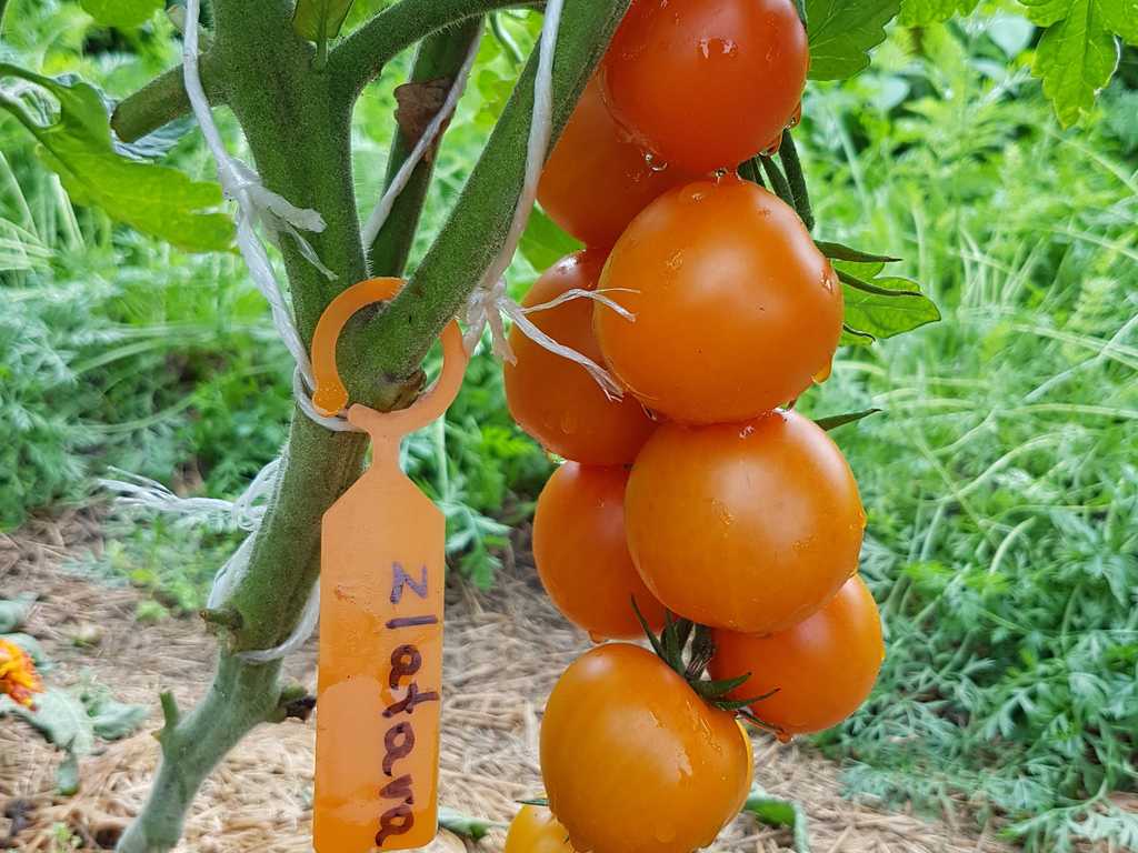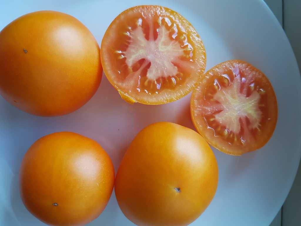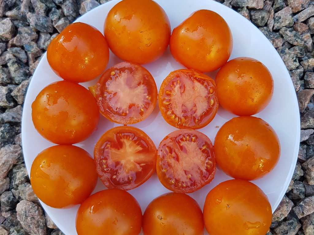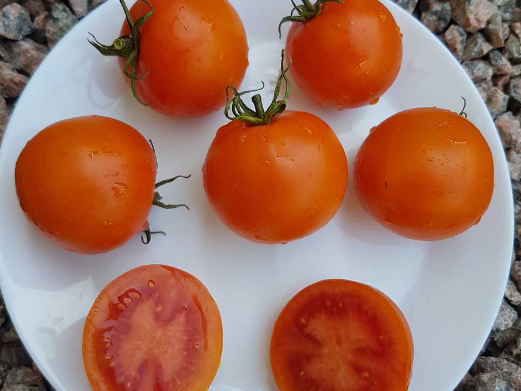 Runda, orangea frukter i cocktail storleken, 80-120g i vikt, fruktkött är lite rosa och har en underbar smak. Det är en mycket produktiv sort i vilken väder som helst och resistent mot sjukdomar. Frukterna lagras länge. Därför är den sort mycket populärt inte bara mellan hobbyodlare men också mellan professionella trädgårdsmästare.